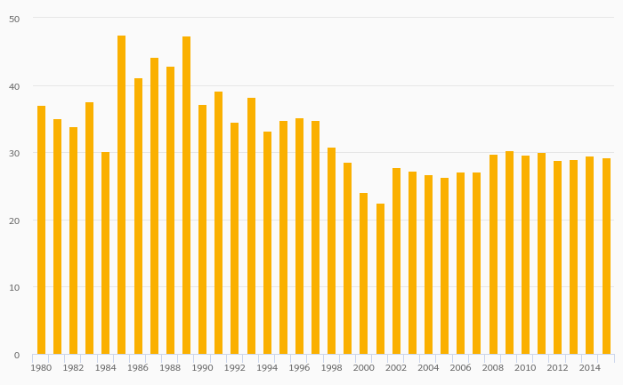 Agriculture, Value Added (As % of GDP) fell 0.766% to 29.3% in Mozambique in 2015