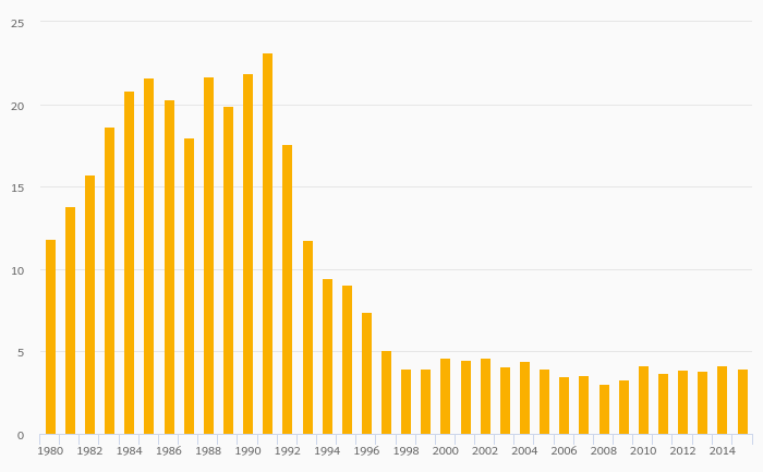 Total Labour Force in Agriculture fell 0.521% to 191 '000 in Croatia in 2016