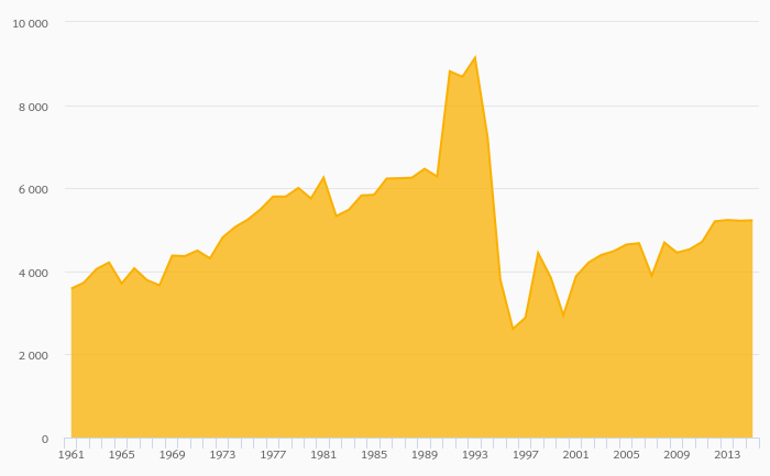 Cereal Production fell 0.137% to 384 kt in Somalia in 2015