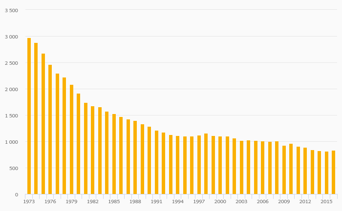 Total Labour Force in Agriculture rose 1.63% to 832 '000 in Spain in 2016