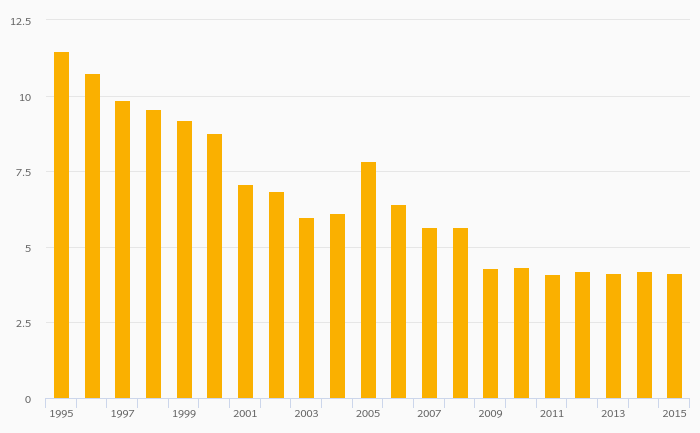Agriculture, Value Added (As % of GDP) fell 3.82% to 3.98% in Latvia in 2015