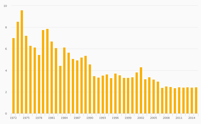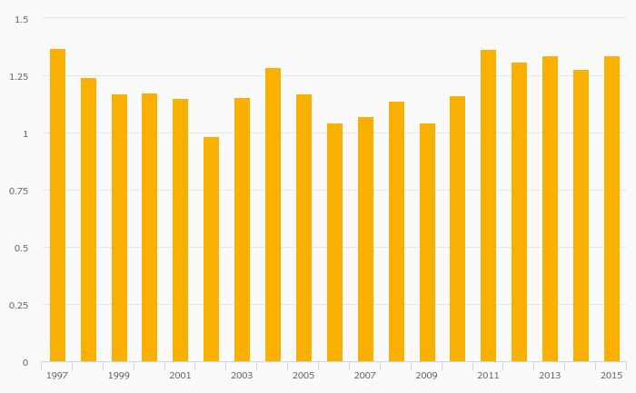 Agriculture, Value Added (As % of GDP) rose 4.50% to 1.34% in the USA in 2015