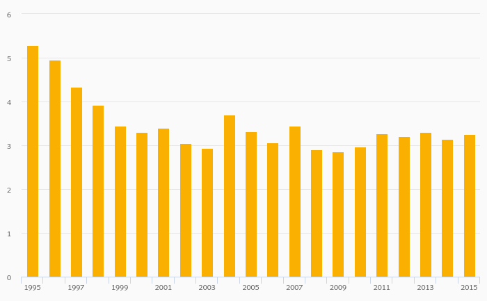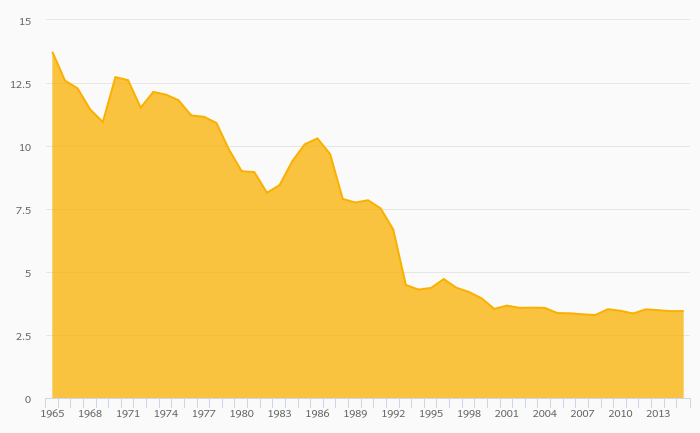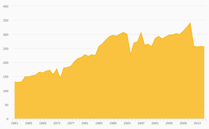 Agriculture, Value Added (As % of GDP) rose 0.227% to 3.45% in Mexico in 2015