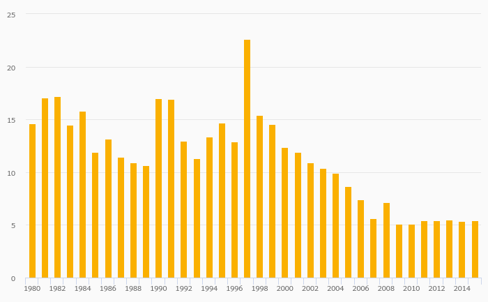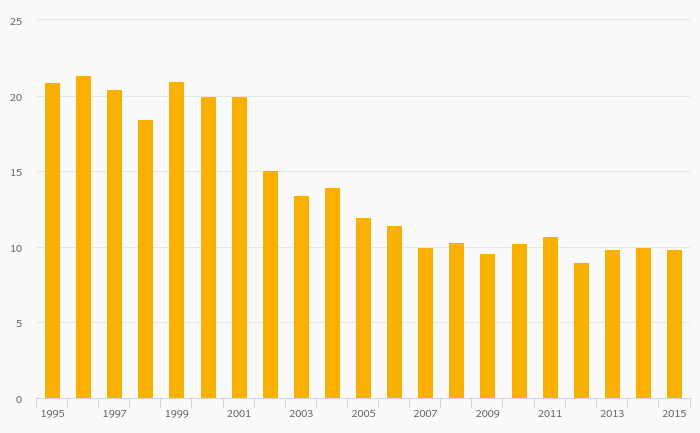 Agriculture, Value Added (As % of GDP) fell 1.30% to 9.84% in Serbia in 2015
