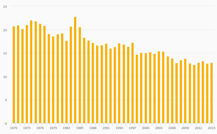 Agriculture, Value Added (As % of GDP) rose 1.22% to 12.9% in Bolivia in 2015