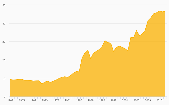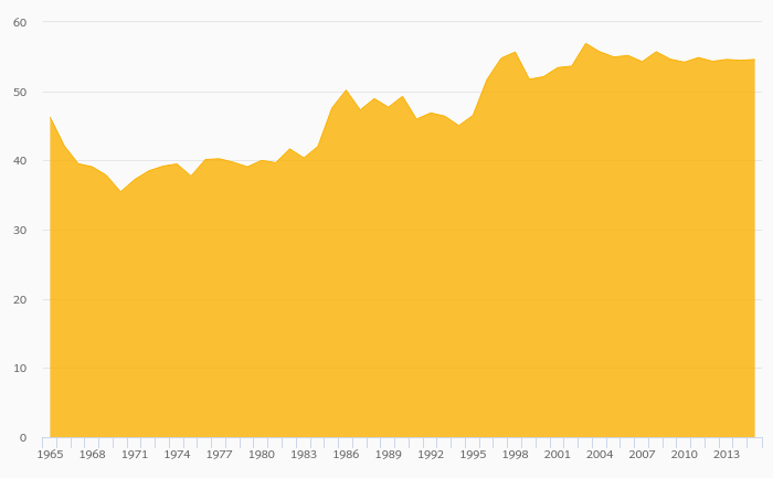 Agriculture, Value Added (As % of GDP) rose 0.241% to 54.6% in Central African Republic in 2015