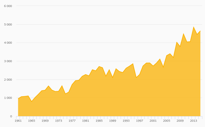 Cereal Production rose 0.541% to 46.5 kt in Gabon in 2015