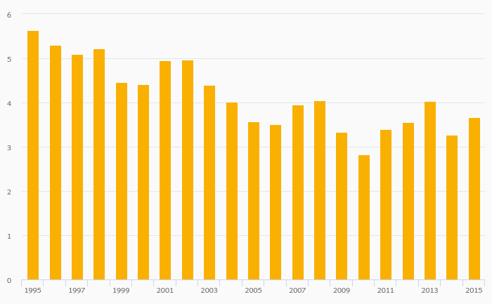 Agriculture, Value Added (As % of GDP) rose 12.4% to 3.67% in Slovakia in 2015