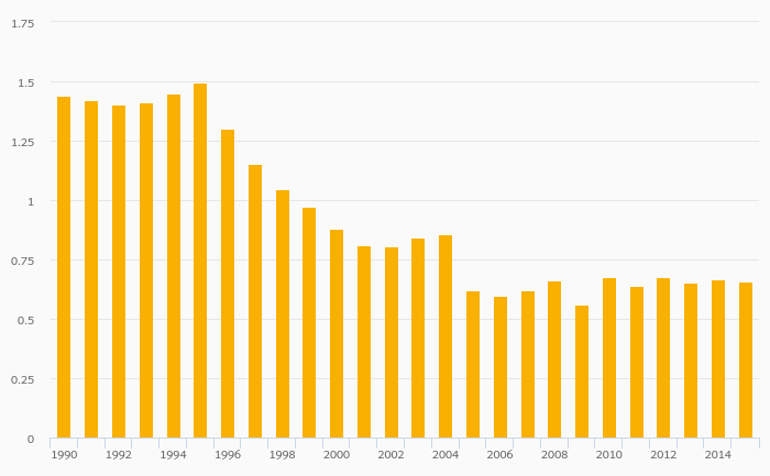 Agriculture, Value Added (As % of GDP) fell 1.24% to 0.656% in the United Kingdom in 2015