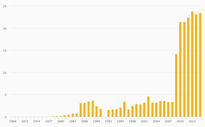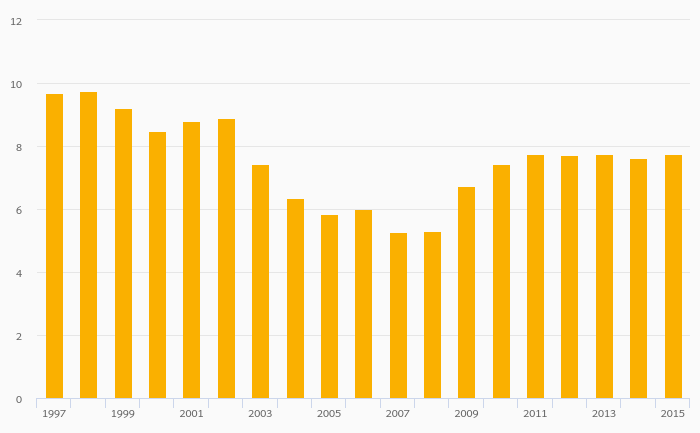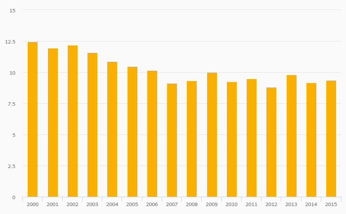 Agriculture, Value Added (As % of GDP) rose 1.97% to 9.36% in Montenegro in 2015