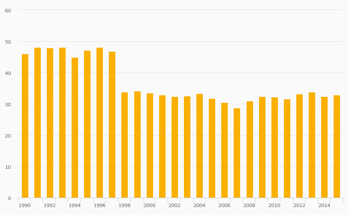 Agriculture, Value Added (As % of GDP) rose 1.74% to 32.9% in Tanzania in 2015