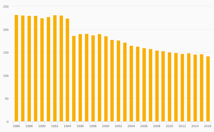 Total Labour Force in Agriculture fell 2.76% to 142 '000 in Netherlands in 2016