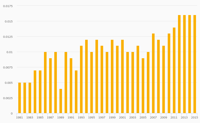 Agriculture, Value Added (As % of GDP) rose 1.32% to 7.73% in Iceland in 2015