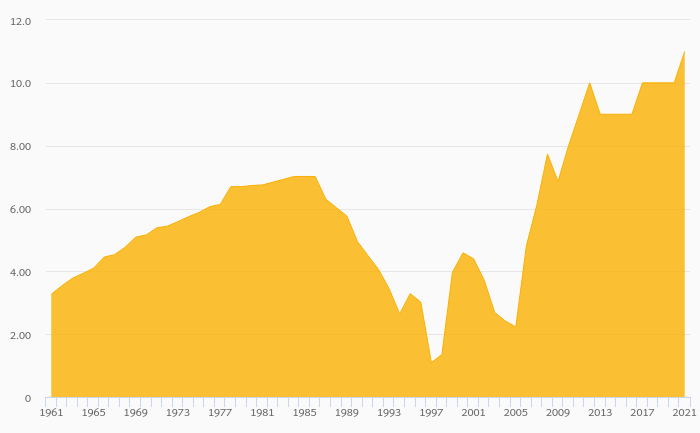 Banana Consumption (Total) rose 10.0% to 11.0 kt in Bahamas in 2021