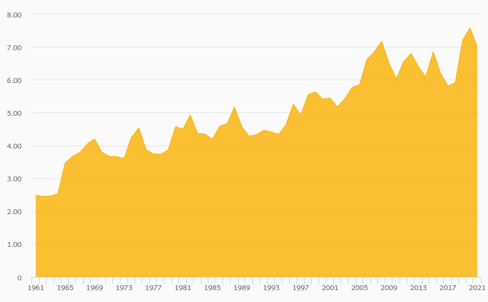 Egg Consumption Per Capita fell 7.65% to 7.00 kg in South Africa in 2021