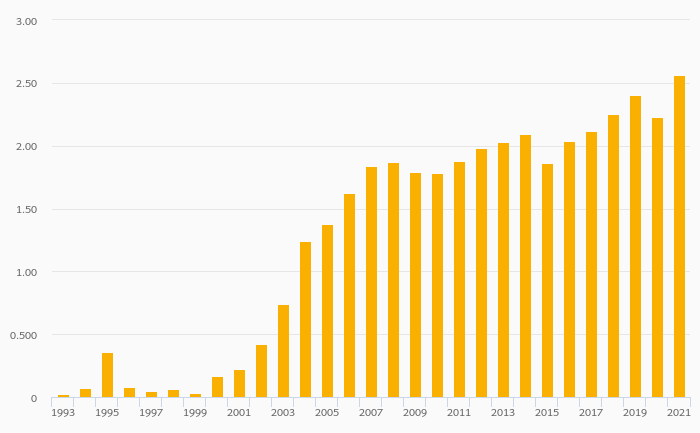 Cocoa Bean Consumption Per Capita rose 14.8% to 2.56 kg in Georgia in 2021