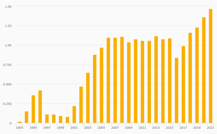Cocoa Bean Consumption Per Capita rose 8.09% to 1.47 kg in Azerbaijan in 2021
