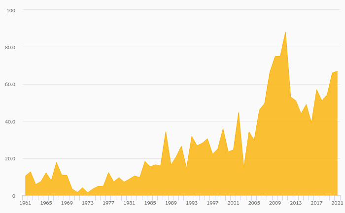Banana Consumption (Total) rose 1.52% to 67.0 kt in Jordan in 2021