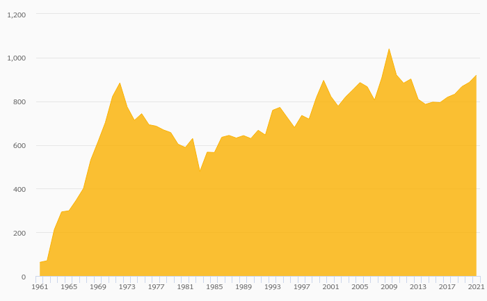 Banana Consumption (Total) rose 3.84% to 920 kt in Japan in 2021