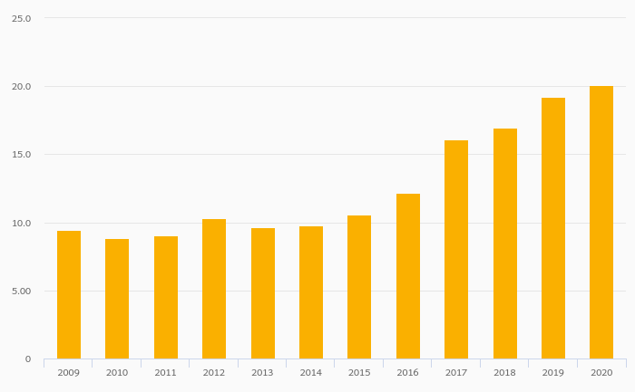 Households' Assets In Investment Funds (As % of GDP) rose 4.58% to 20.1% in Brazil in 2020