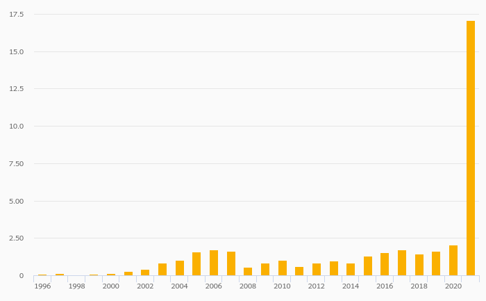 Households' Assets In Investment Funds (As % of GDP) rose 738% to 17.1% in Estonia in 2021