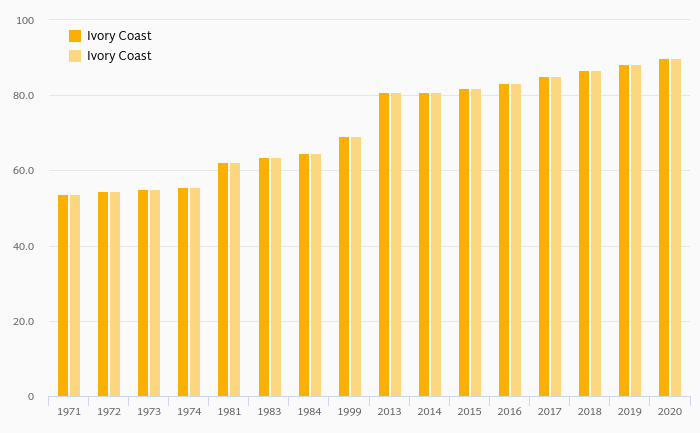 Girls to Boys In Primary and Secondary Education rose 1.58% to 89.8% in Ivory Coast in 2020