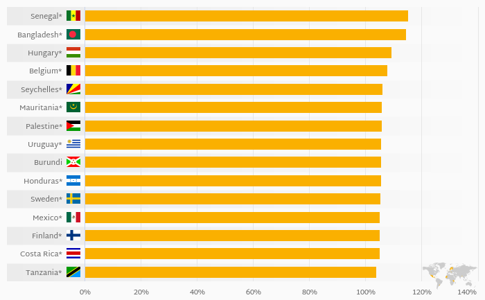 Gross School Enrollment, Female (Primary Education) rose 1.20% to 116% in United Arab Emirates in 2020