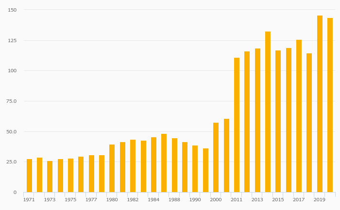 Gross School Enrollment, Female (Primary Education) fell 1.32% to 144% in Sierra Leone in 2020