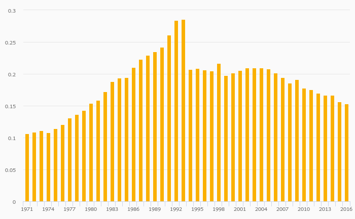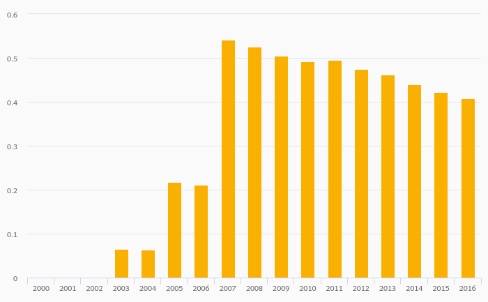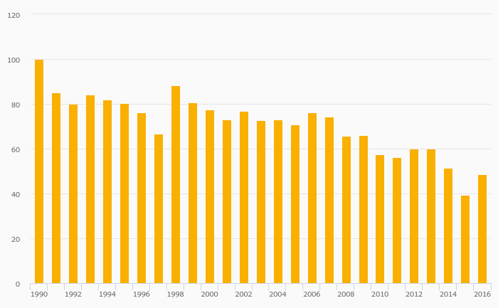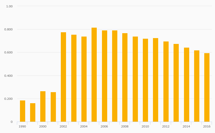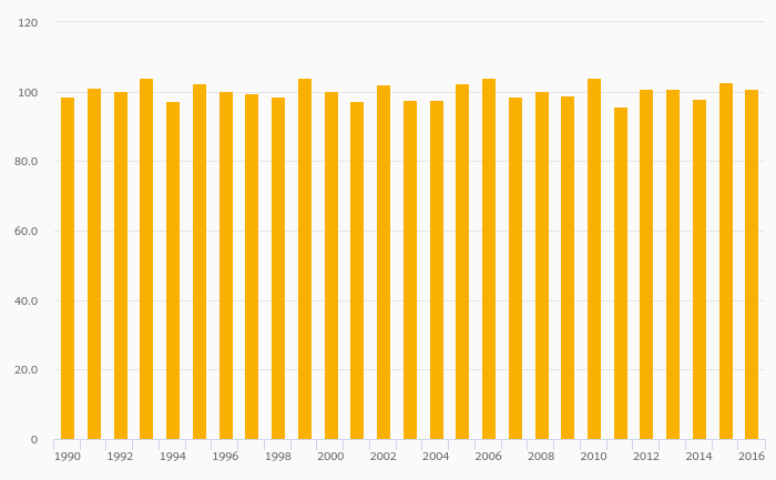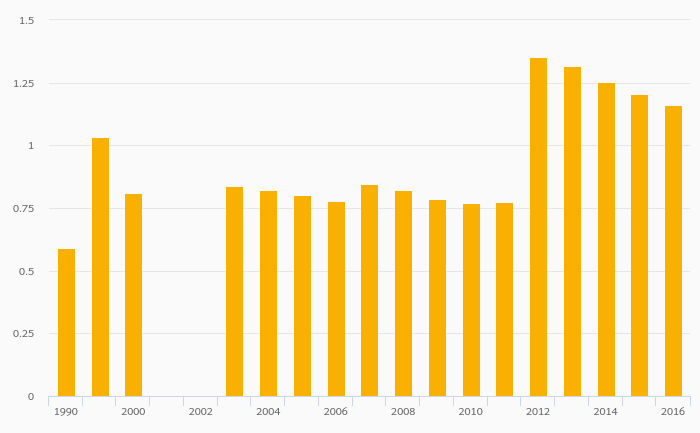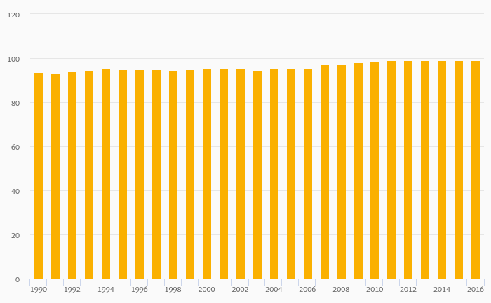 Energy Dependence (Natural Gas) rose 0.101% to 99.2% in Sweden in 2016