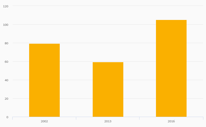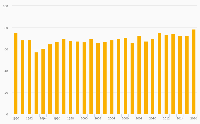 Energy Dependence (Natural Gas) rose 8.59% to 78.4% in Poland in 2016