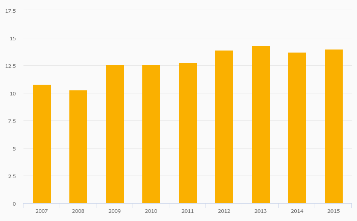 Energy Consumption by Households and Services (As % of Total) - ENP rose 2.19% to 14.0% in Azerbaijan in 2015