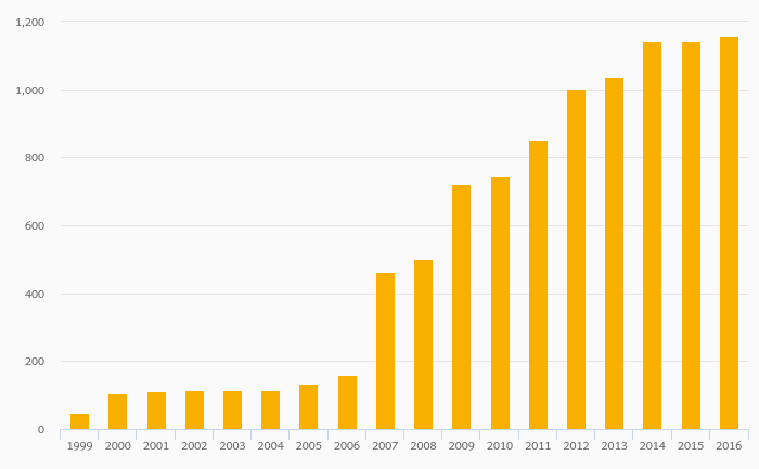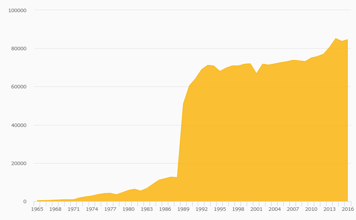 Geothermal, Biomass and Other Consumption rose 1.04% to 84,607 GWh in the USA in 2016