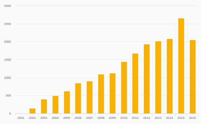 Biofuels Production (Tonnes of Oil Equivalent) fell 22.6% to 2,053 kt in China in 2016