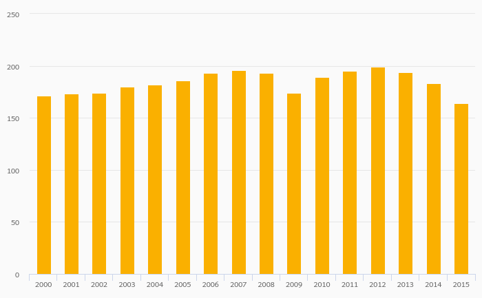 Electricity Generation (MWh) ENP fell 10.4% to 164 in Ukraine in 2015