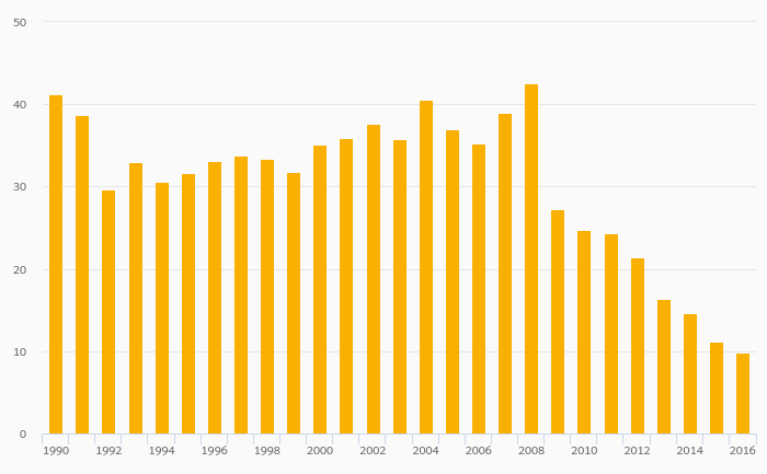 Energy Dependence (Hard Coal & Derivatives) fell 12.5% to 9.80% in Bulgaria in 2016