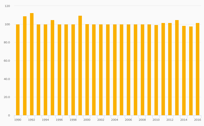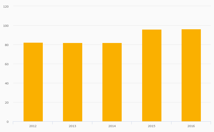 Geothermal, Biomass and Other Consumption rose 0.274% to 96.3 GWh in Hong Kong in 2016