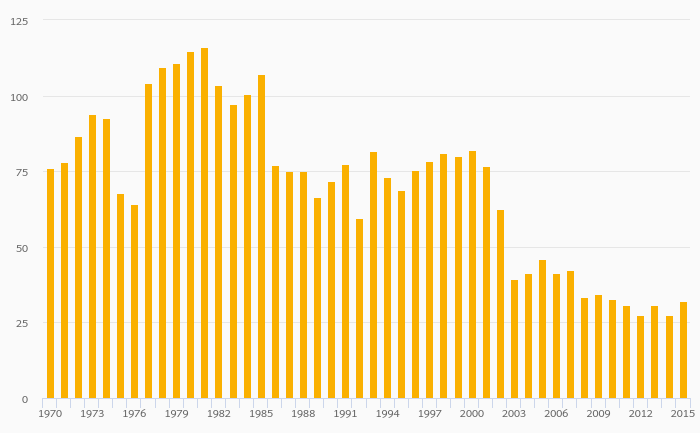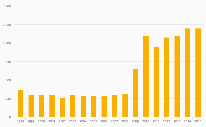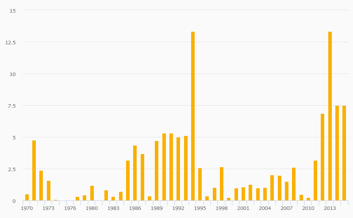 Selenium Metal Production fell 1.06% to 93.0 tonnes in Finland in 2015
