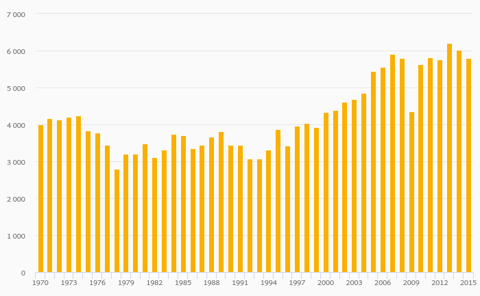 Pig Iron Production fell 3.49% to 5,805 kt in Austria in 2015