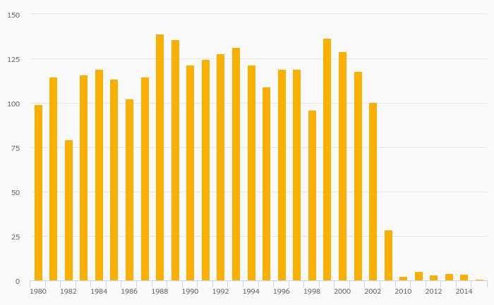 Beryl Production rose 0% to 135 tonnes in Madagascar in 2015