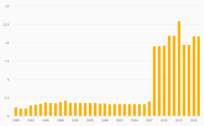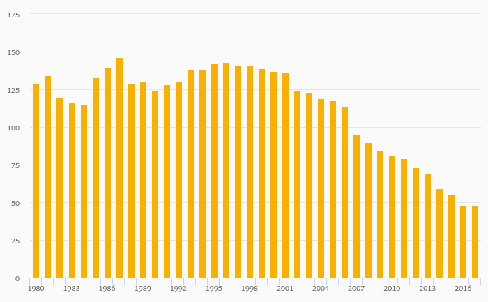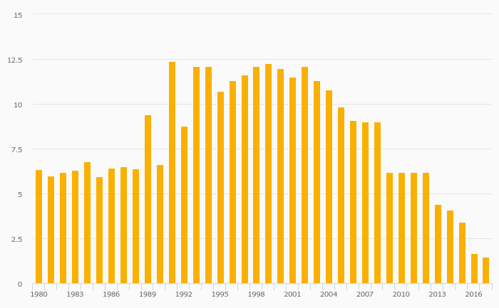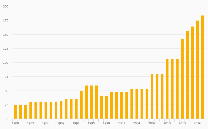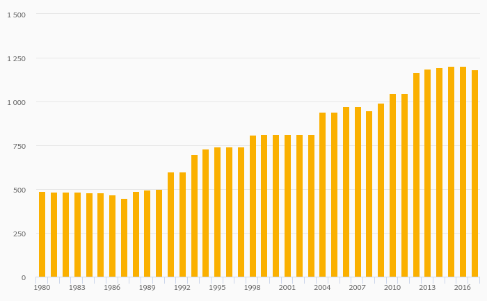 Proved Reserves of Natural Gas fell 1.53% to 1,183 trillion cb ft in Iran in 2017