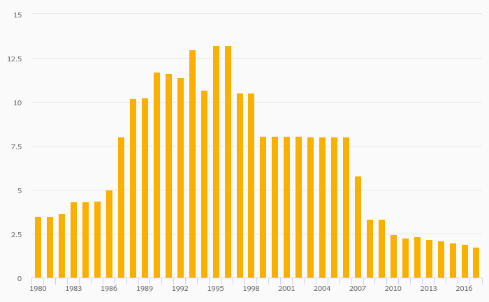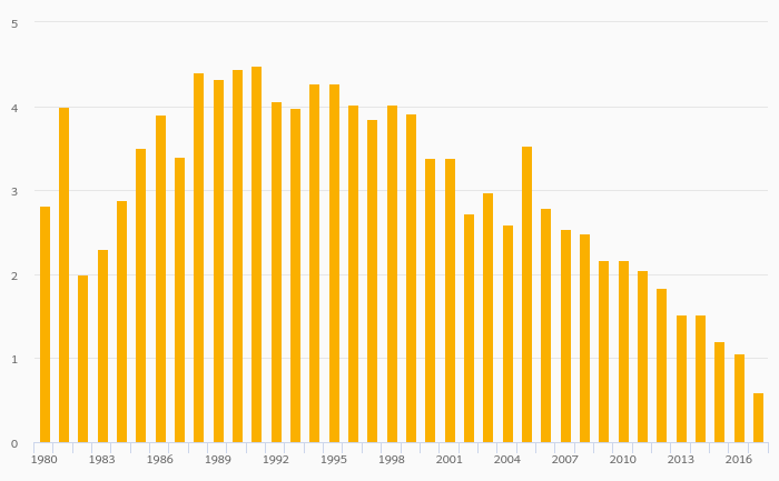 Proved Reserves of Natural Gas fell 8.54% to 1.74 trillion cb ft in Italy in 2017