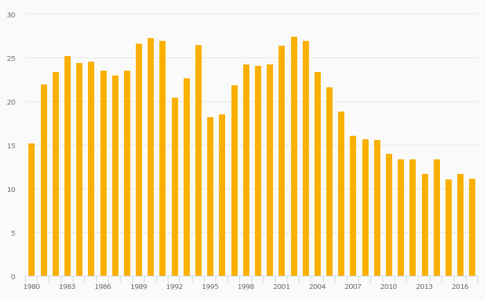 Proved Reserves of Natural Gas fell 4.74% to 11.2 trillion cb ft in Argentina in 2017