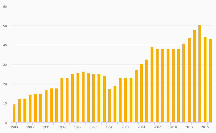 Proved Reserves of Natural Gas rose 131% to 70.2 trillion cb ft in Australia in 2017