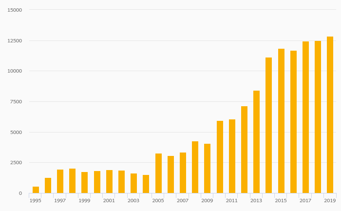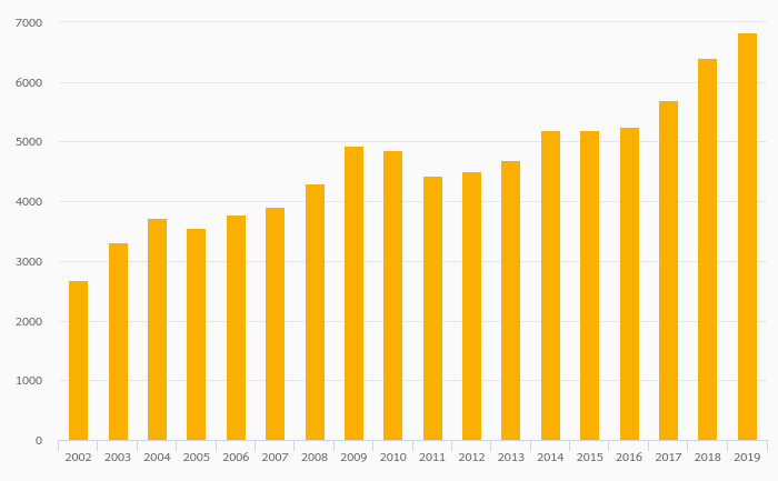 International Tourism, Expenditure (USD) rose 8.87% to USD 6,997 mil in Portugal in 2019