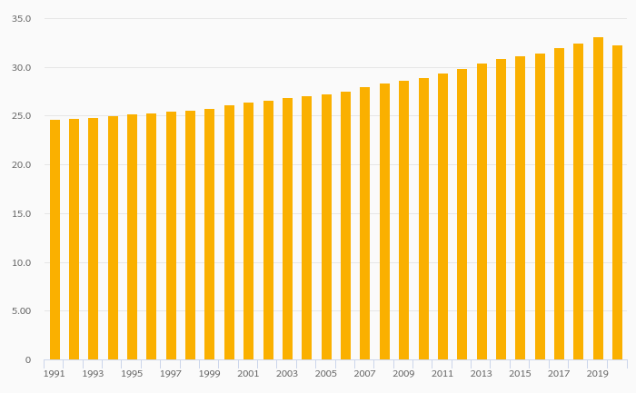 Employees In Services, Male (As % of Male Employment) fell 2.50% to 32.3% in Benin in 2020