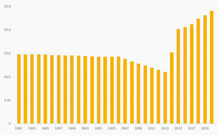 Employees In Services, Male (As % of Male Employment) fell 0.891% to 80.4% in Singapore in 2020