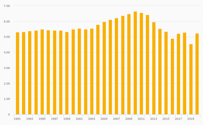 Employers, Male (As % of Employment) fell 1.41% to 5.88% in Germany in 2020