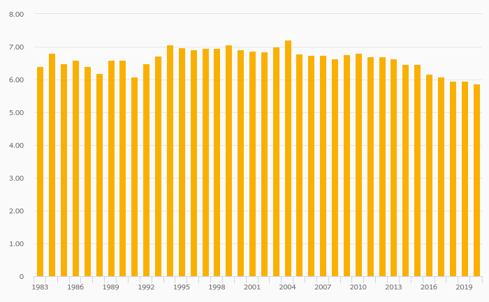 Employers, Male (As % of Employment) fell 0.057% to 5.82% in the European Union in 2020