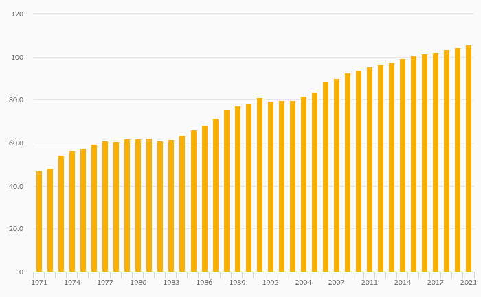 Girls to Boys In Primary and Secondary Education rose 0% to 106% in Burundi in 2021