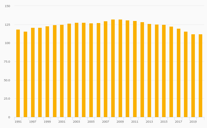 Female to Male Tertiary Enrollment Rate rose 0.131% to 112% in Belarus in 2020